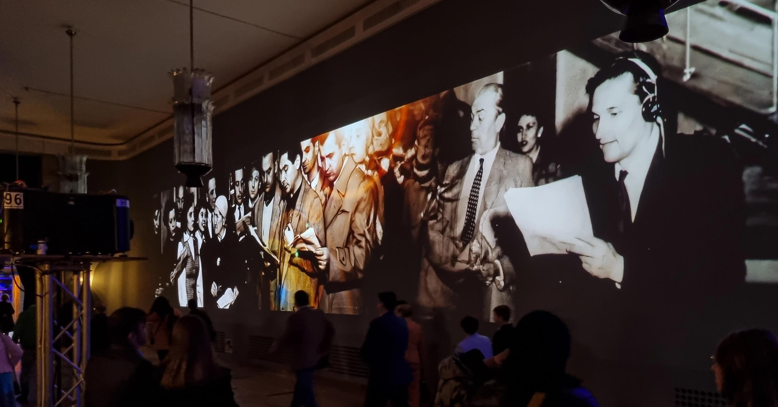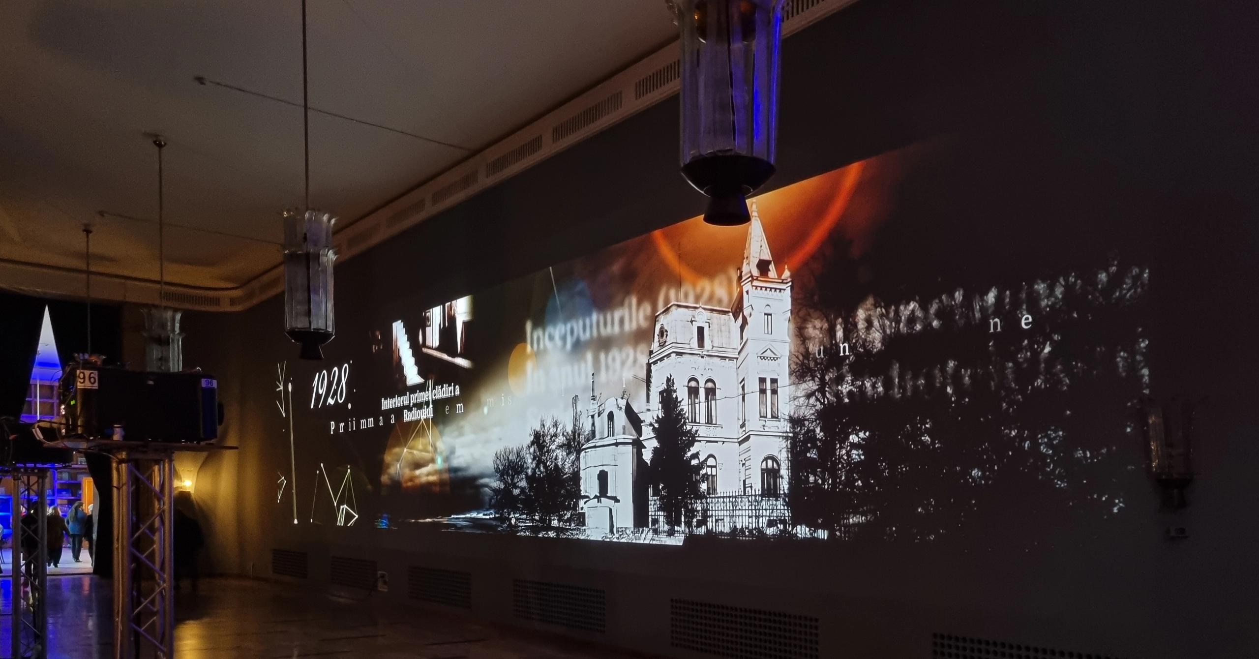 Video projection at Sala Radio, Bucharest, marking 95 years of Radio Romania.