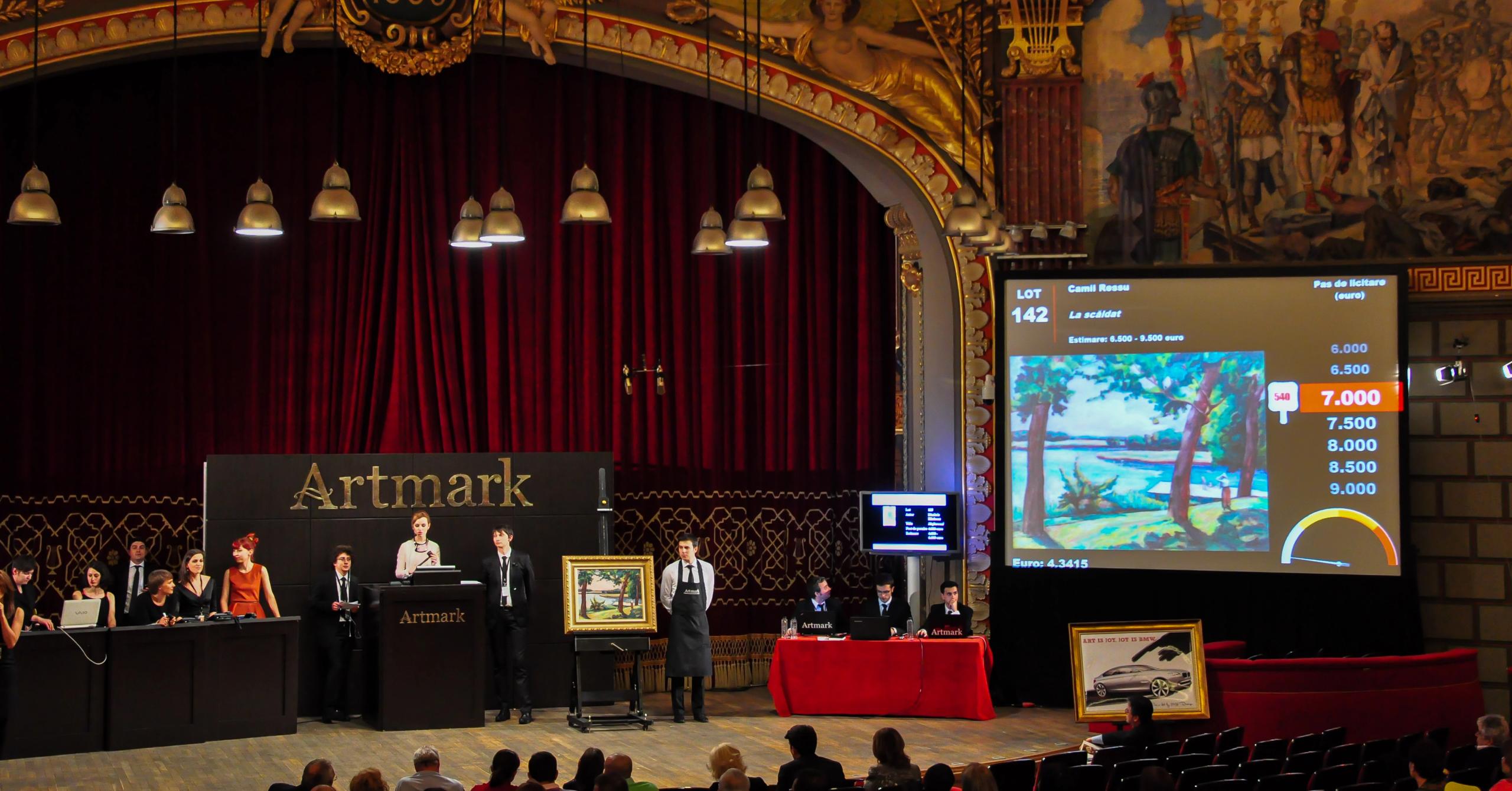 Video projection during an Artmark art aucion at the Romanian Athenaeum in Bucharest.