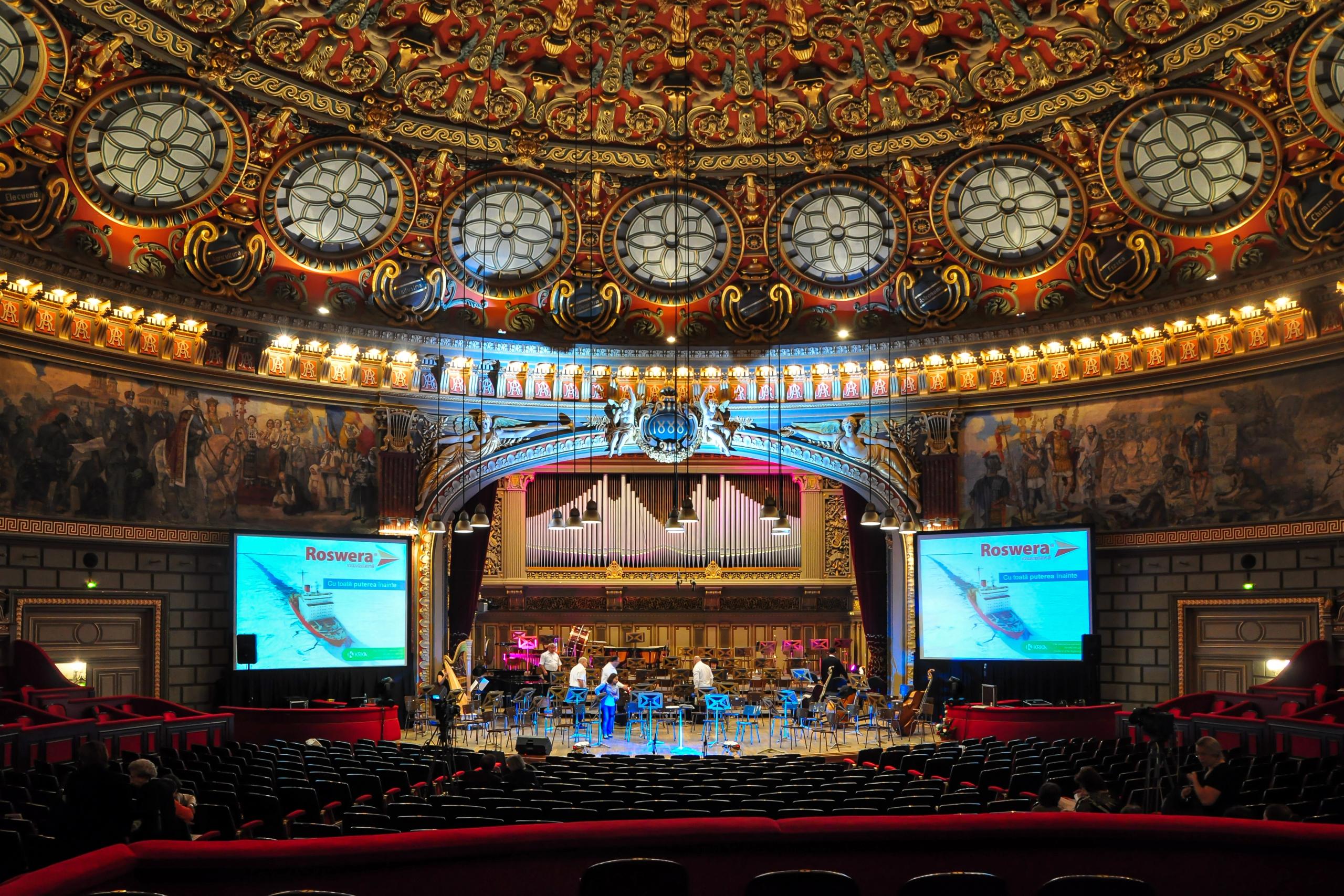 Video projection at the Romanian Athenaeum in Bucharest during a Philharmonic concert offered by Krka.