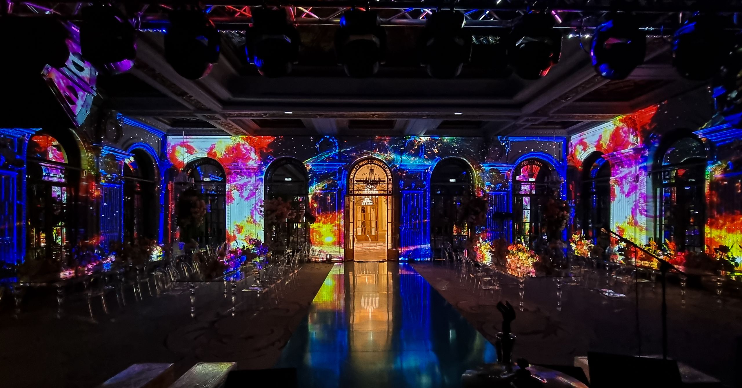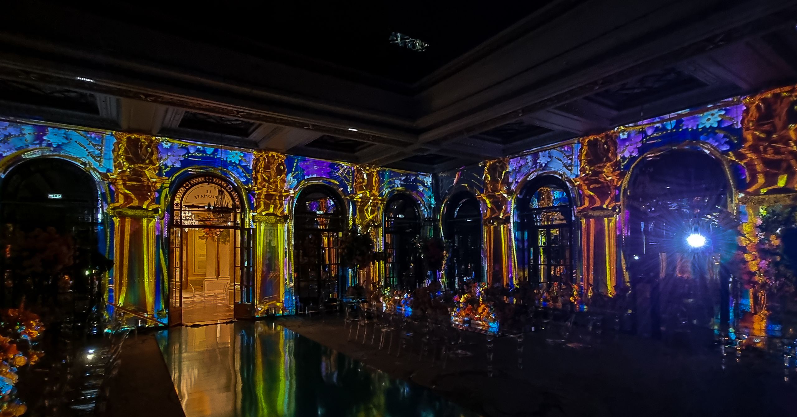 Immersive video mapping at Le Diplomate — the Athénée Palace Hotel in Bucharest — transforming the historic venue for a special event.