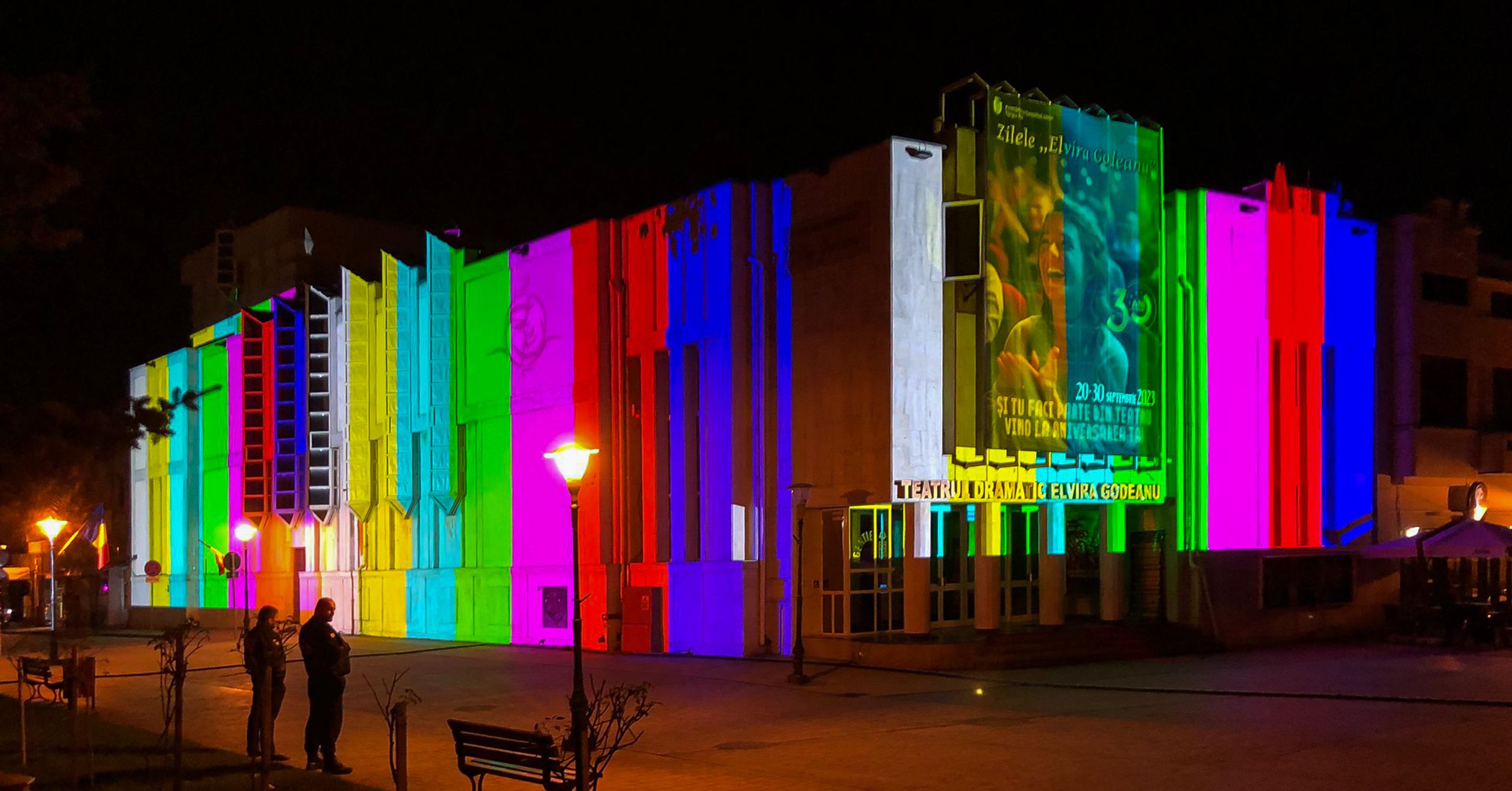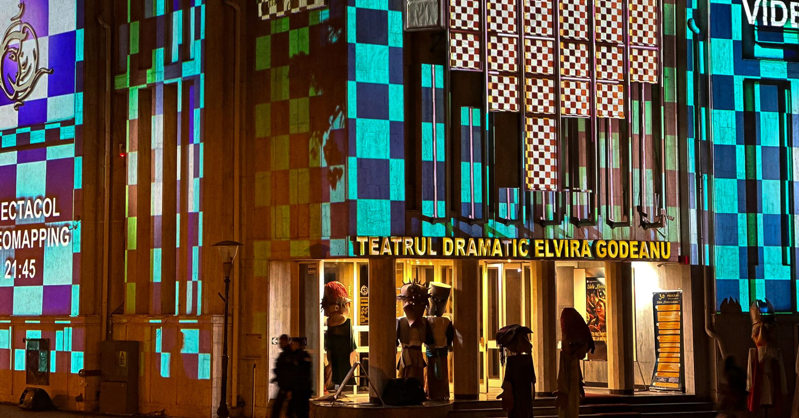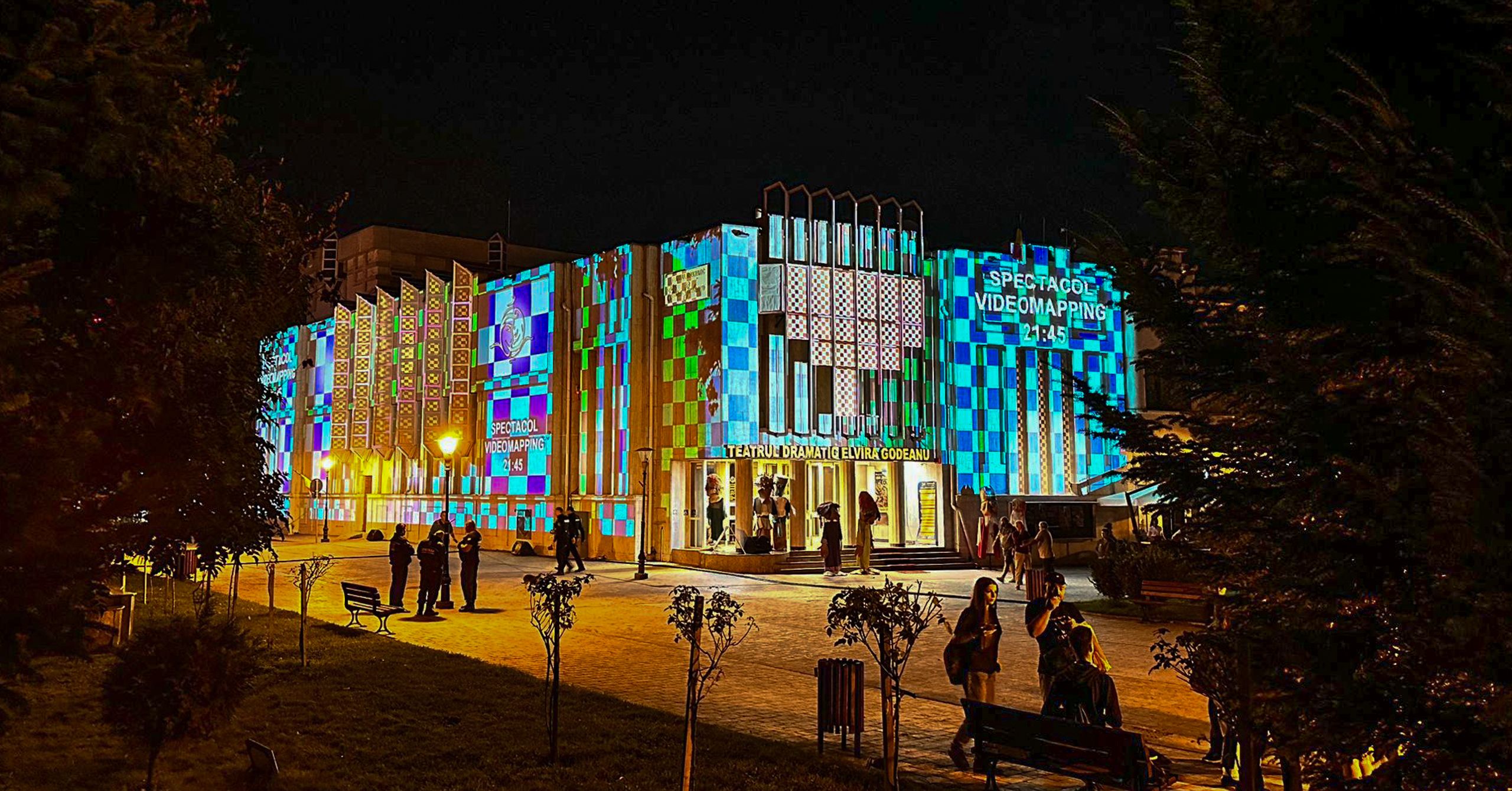 Projection mapping on the facades of the Elvira Godeanu Drama Theatre in Târgu Jiu.